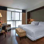 The rooms feature such facilities as a minibar fridge, along with a flat-screen TV with satellite channels for guests' entertainment. Furnished with a work desk, they also have soundproof windows. Providing a spa bathtub, the marble-lined bathrooms have bathrobes and slippers.